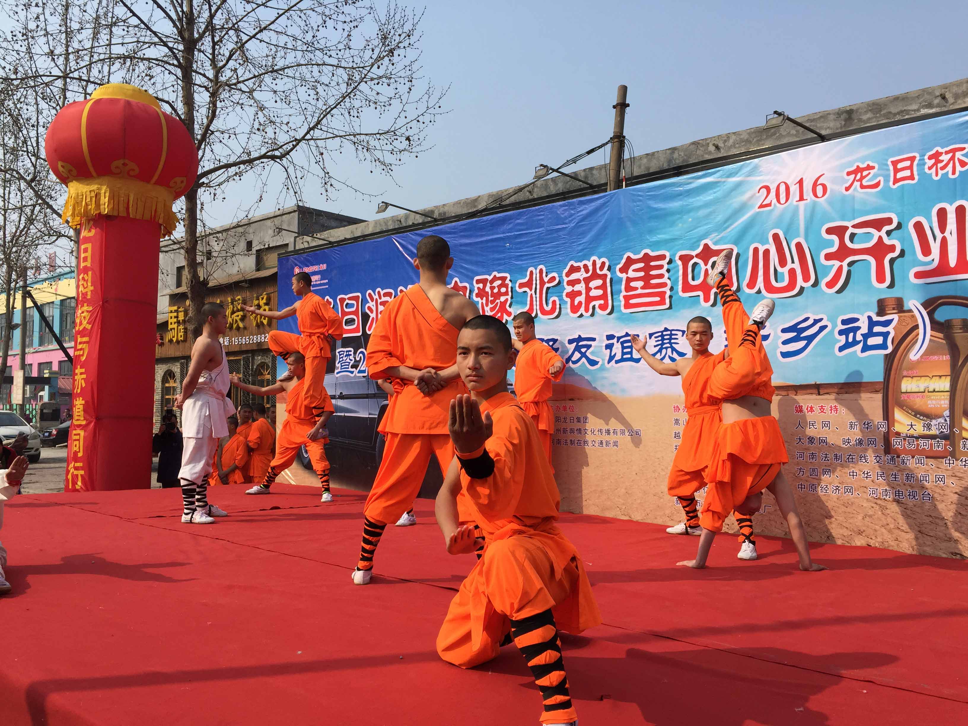 龙日润滑油豫北销售中心于同一天在新乡盛大开业。开业当天,我公司有幸请到少林寺塔沟武术学校春晚表演团原班人马上演春晚节目《少林中国》,塔沟武术学校的精彩表演将当天的盛况掀起了另一股***。